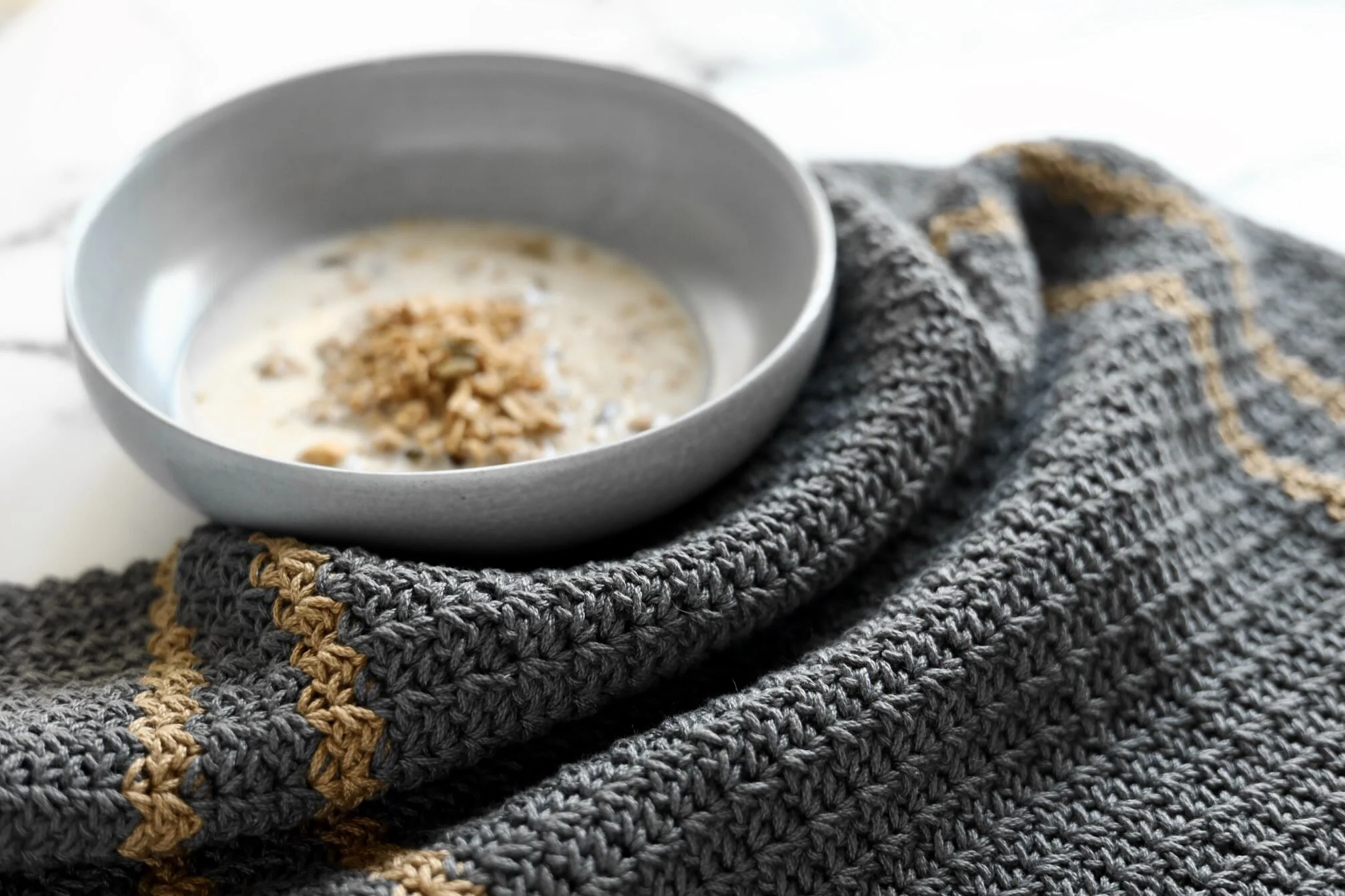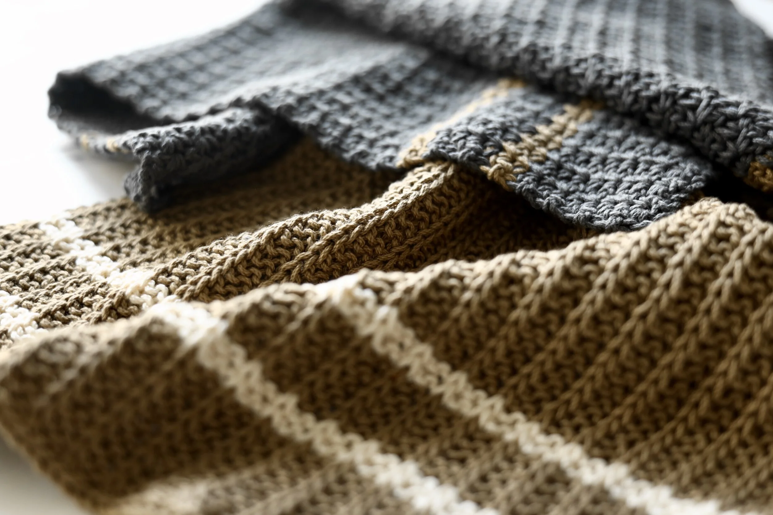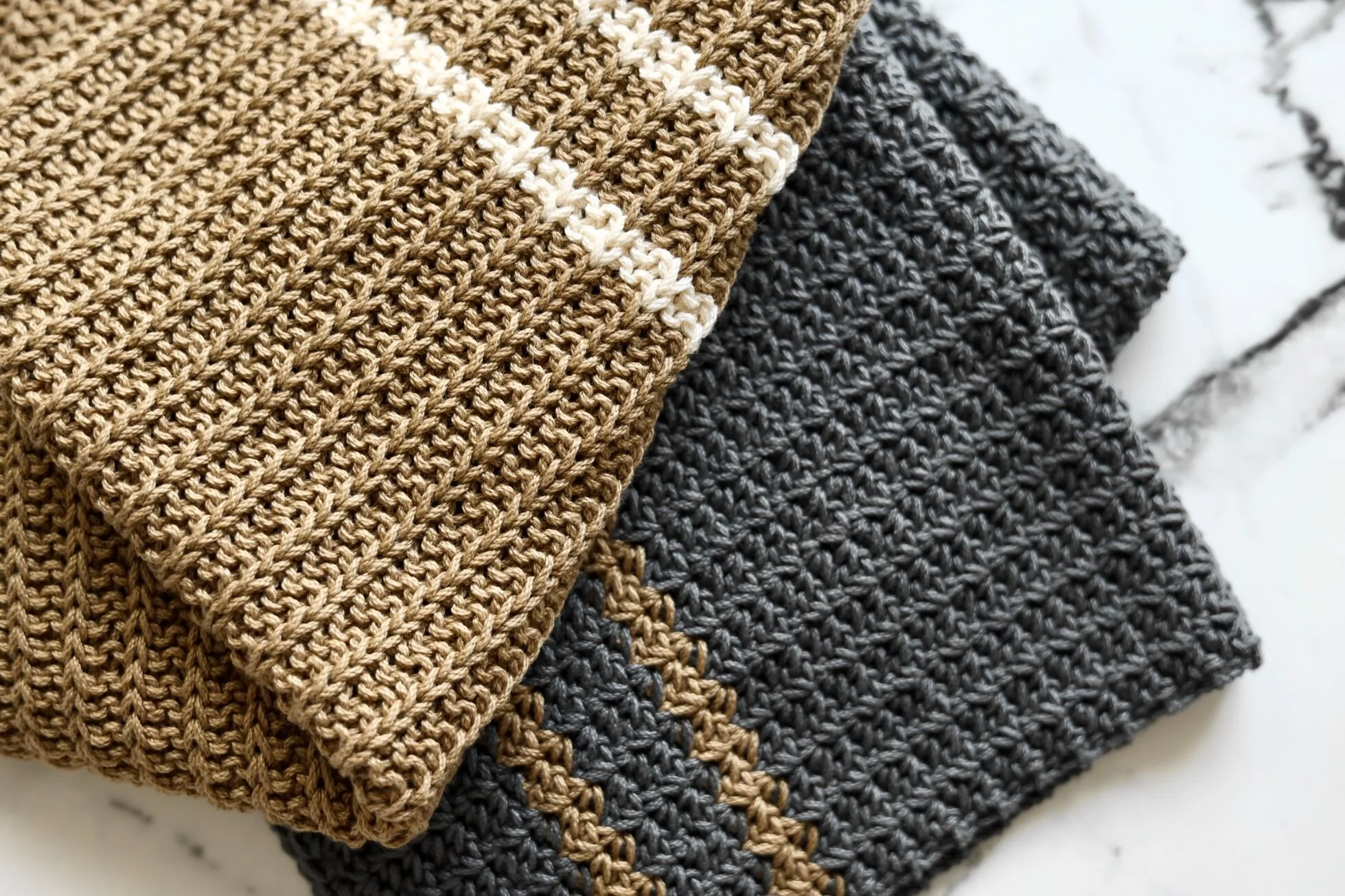 The Mercantile Kitchen Cloth is an easy level crochet pattern and the techniques involved are single crochet, chaining and skipping stitches, working into chain spaces, and changing colors at the end of a row.