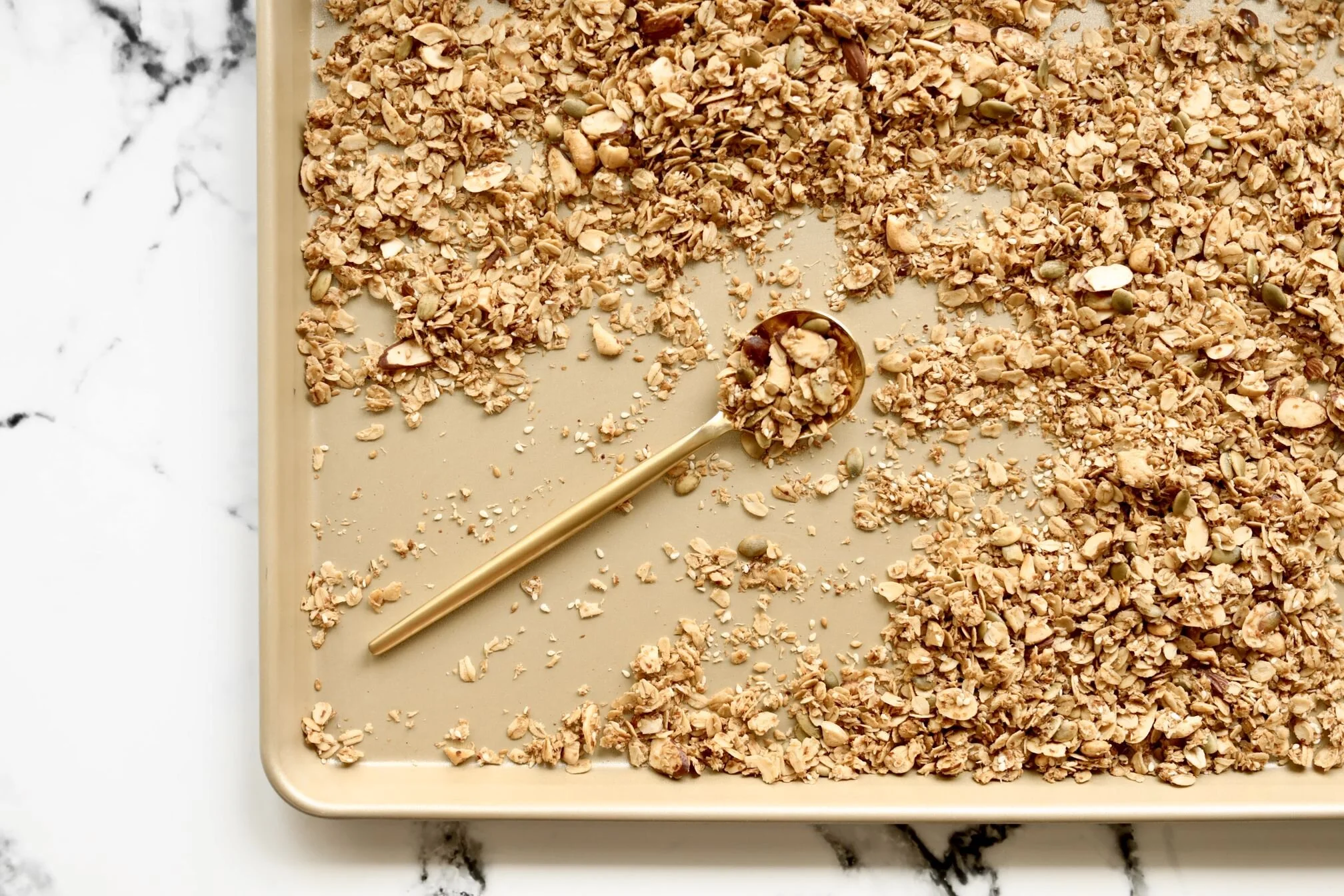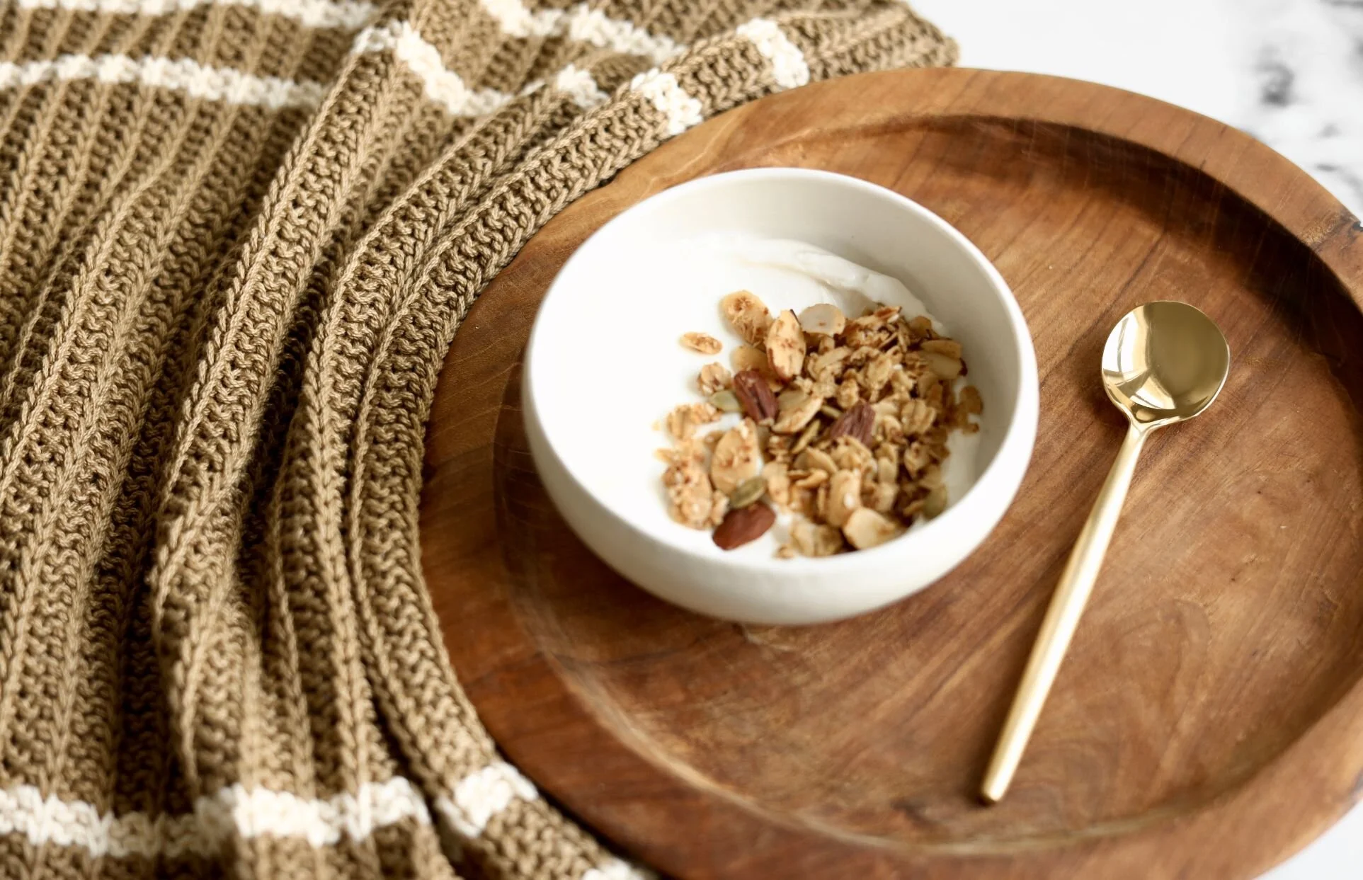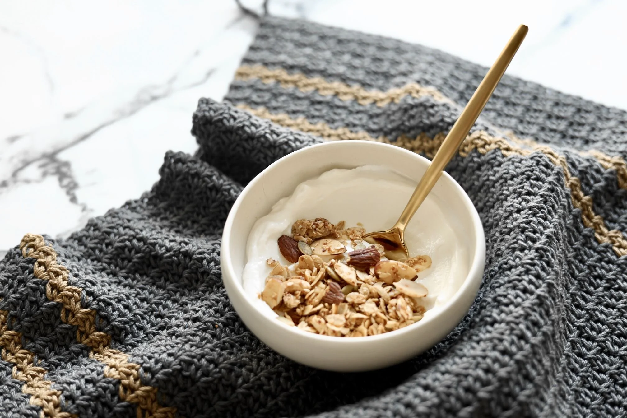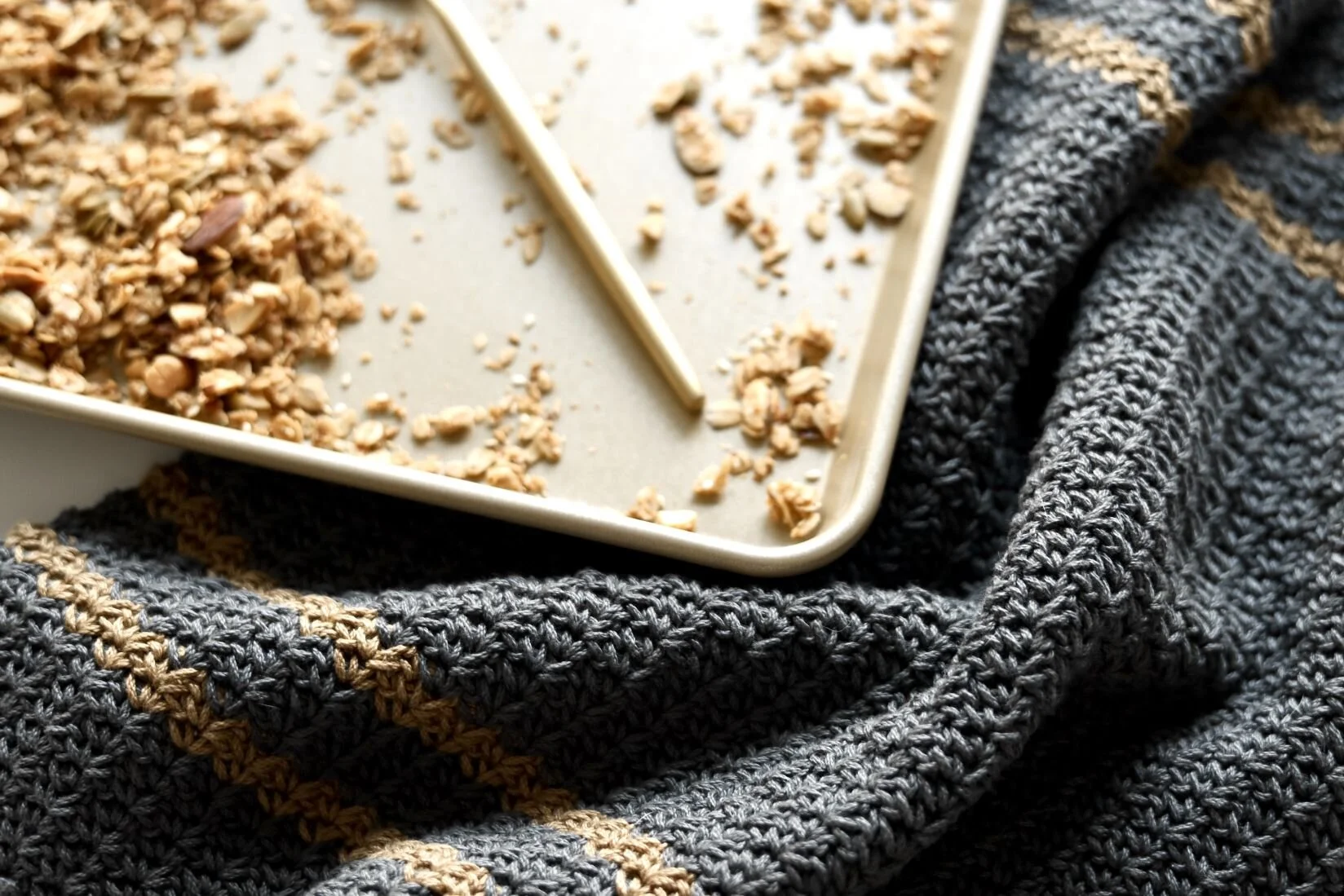 In addition to the towels, this year I wanted to offer an extra special something. So many of us have taken up a lot more cooking in the past year, and aside from knitting and crocheting, it's one of my favorite activities. I often share recipes and kitchen hacks in my Instagram stories, but I'm excited to start bringing more food and home related content to you across the board. So I figured I'd start with one of my most "famous" recipes - my granola! I use it to top my yogurt, as a cereal with a splash of oat milk, or just as a standalone snack eaten by the handful (once you start you can't stop!). The best part about making your own granola is that you can shop for almost all of the ingredients in the bulk food section of your grocery store. You can bring your own reusable containers to fill up with all of the ingredients and reduce the packaging waste from purchasing each item individually wrapped or ready-made granola. Hot tip: it’s also cheaper to shop this way!