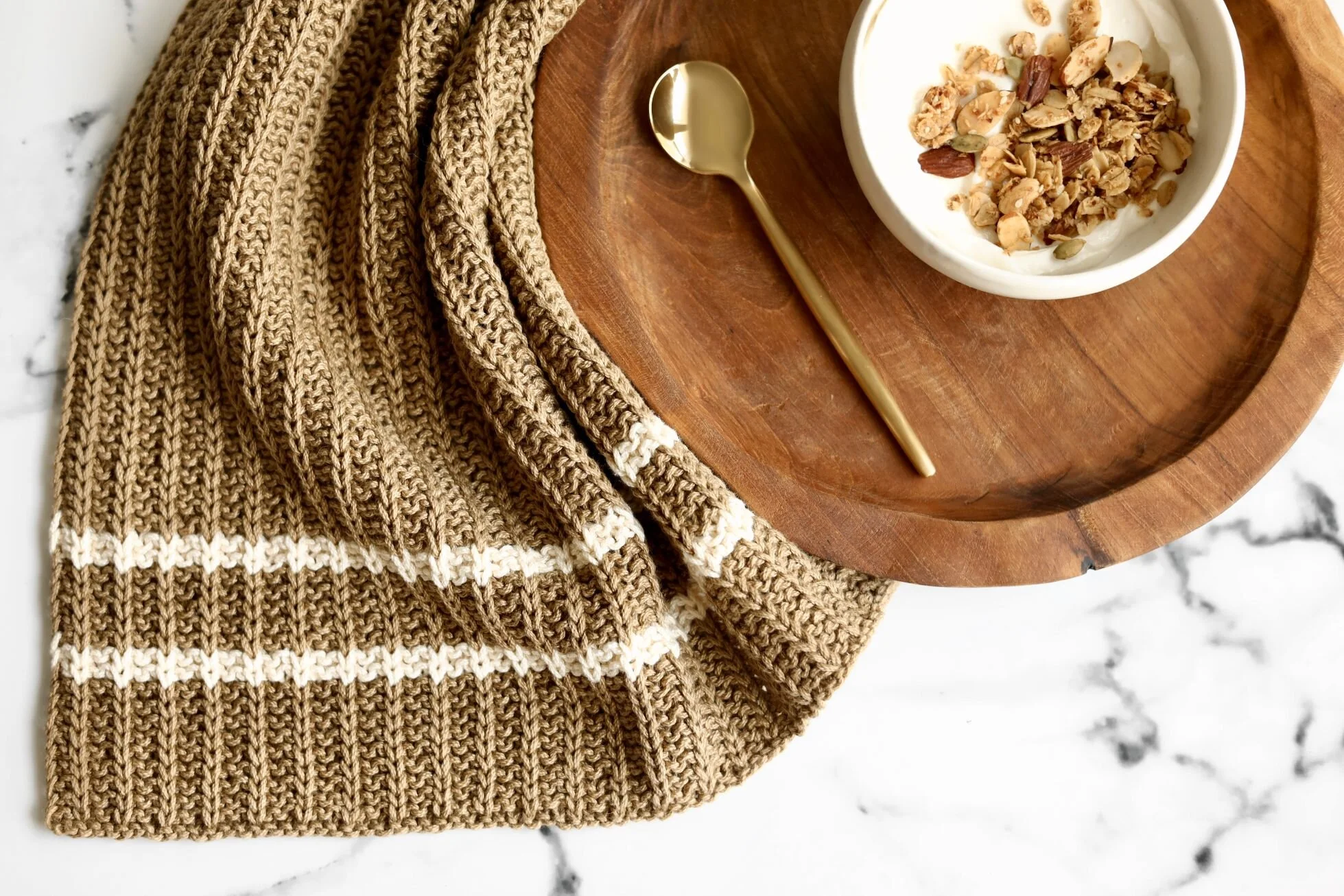 Whenever I think of classic, simple sophistication I immediately think of the French. They have a certain je ne sais quoi way of making everything feel elegant and effortless at the same time. I love the way the classic striped napkins at French cafes are such workhorses but simultaneously look so chic. This concept heavily influenced the two designs, and I named the knit towel the Bistro Kitchen Cloth as a nod to it.