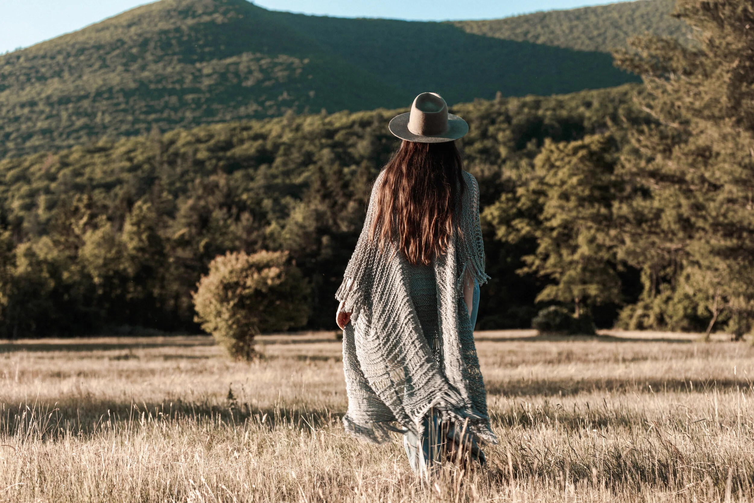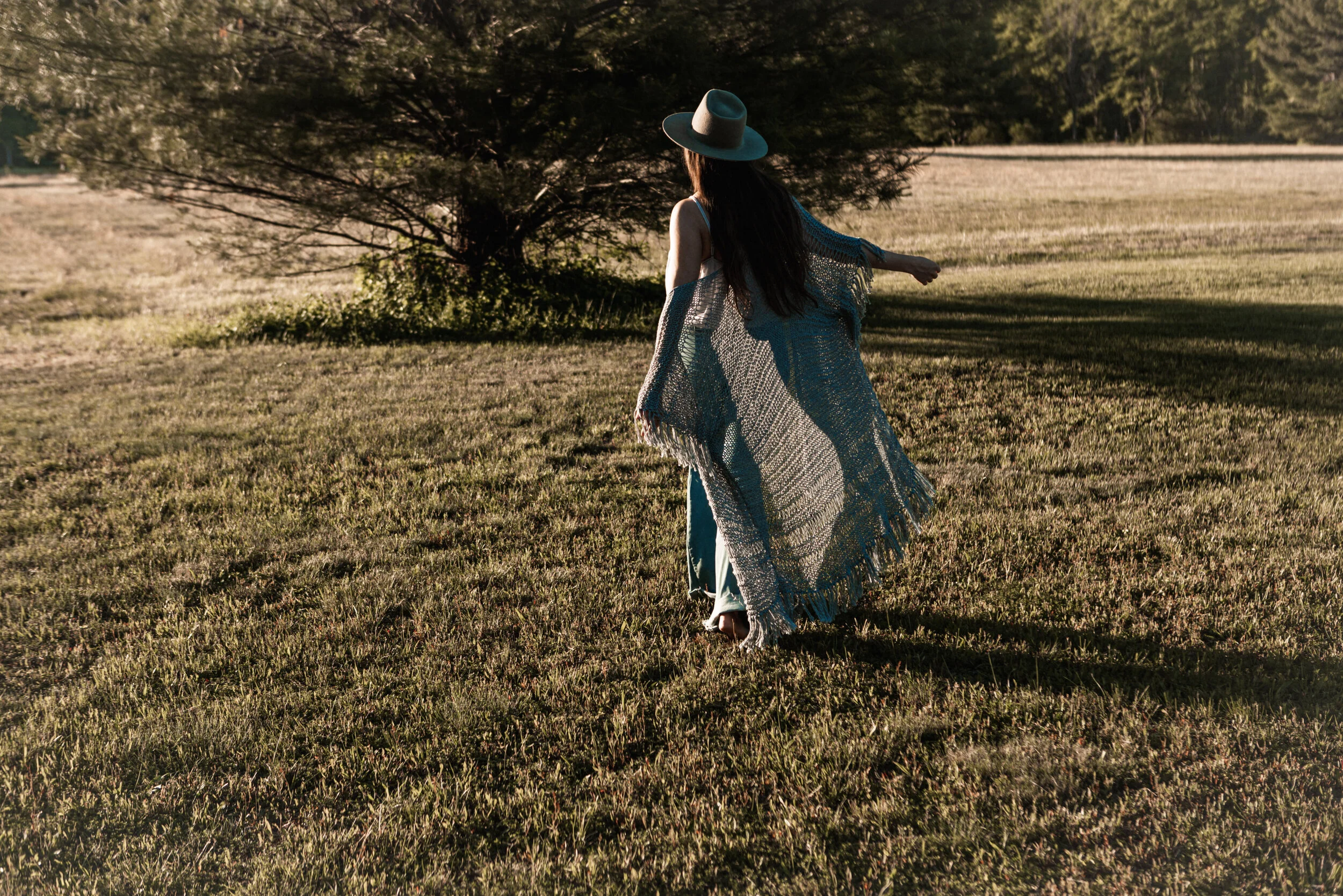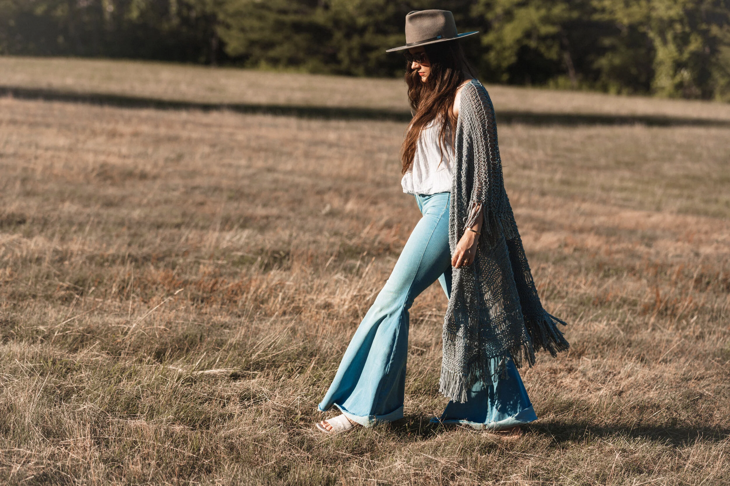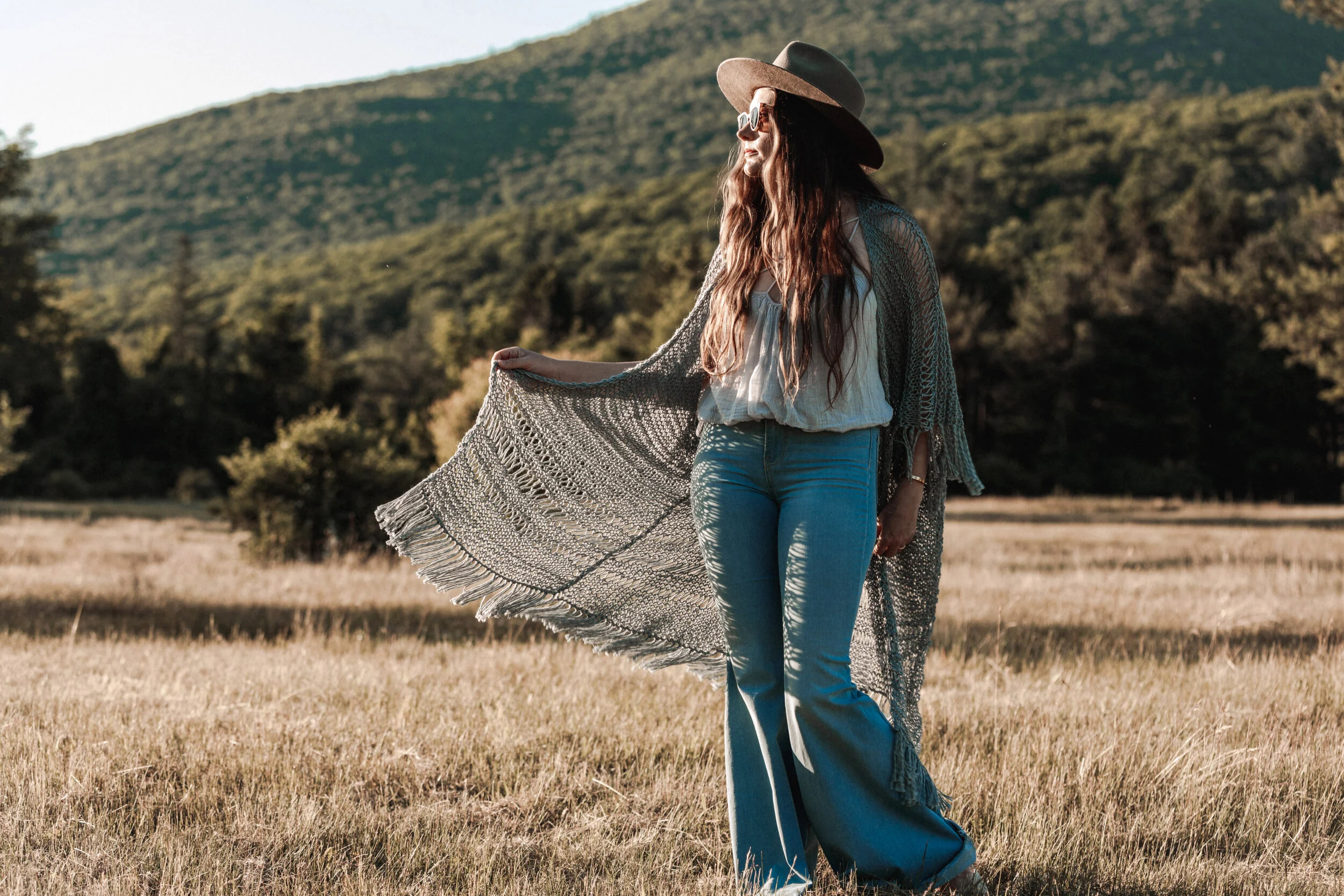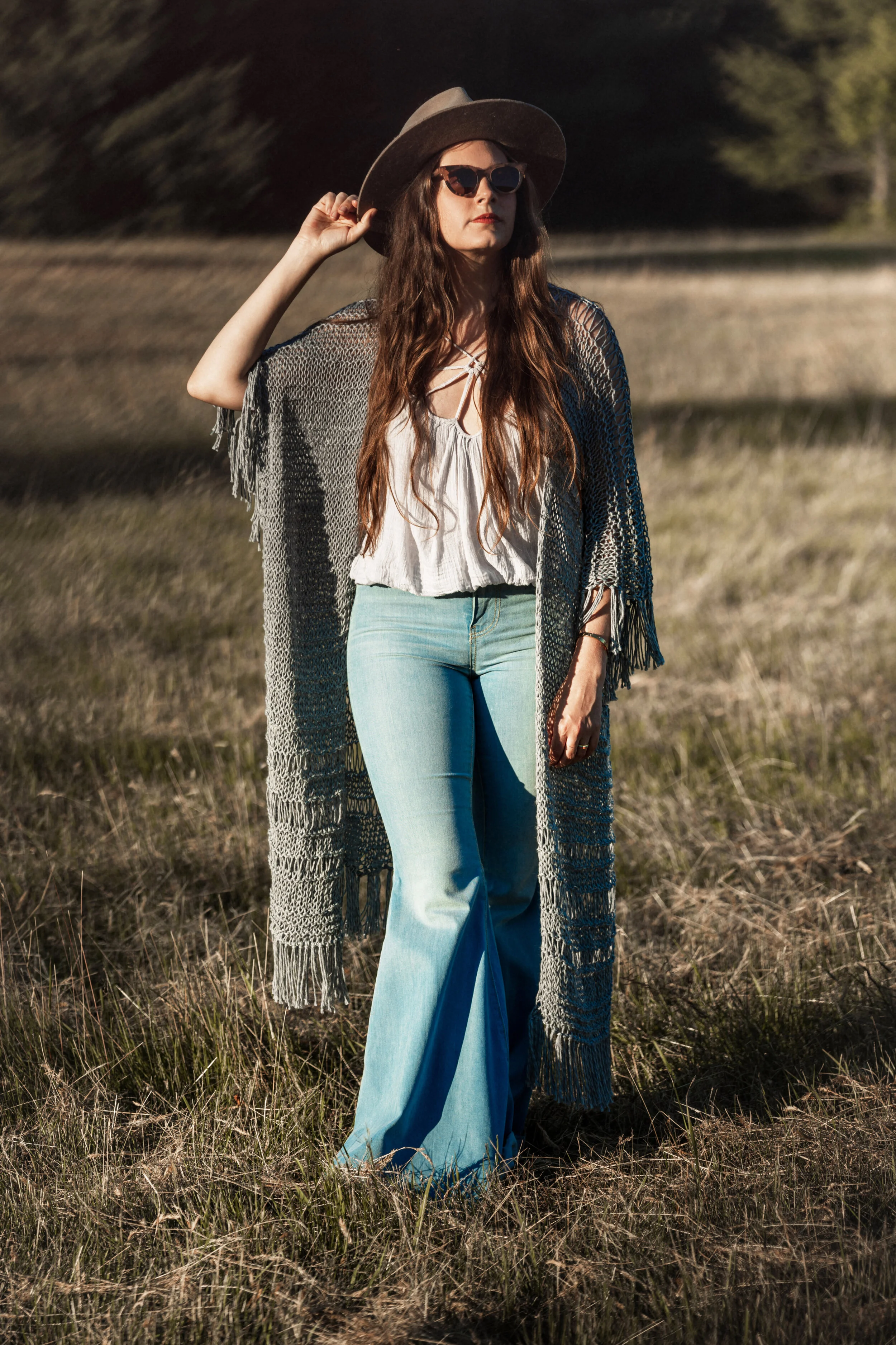 As I mentioned above, I was reminded how lovely Lion Brand's Comfy Cotton Blend yarn is having just used it for my Magic Hour Sweater. It is so very soft and affordable, and makes for a beautiful, lightweight spring or summer project. For this design, I wanted the fabric to be extra gauzy and breathable. I imagine it being picked up in a gust of wind with the fringe flying in all its glory. In order to get the fabric how I envisioned it, I knit it super loose on 10mm needles to create an extra delicate look and feel. The addition of drop stitches added even more airiness and the whole look was complete with boho fringe lining the bottom hem and armholes.