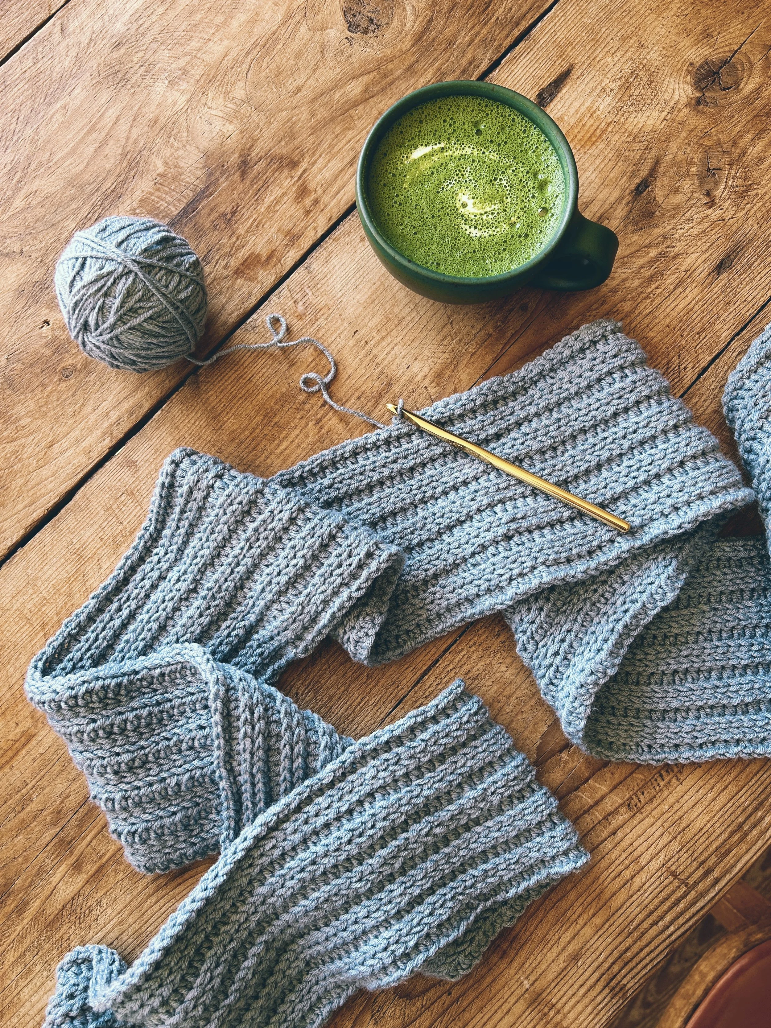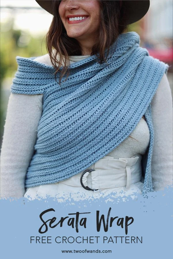 The sea of meditative stitches that make up this wrap is so therapeutic that I can’t even express how much I enjoyed working on this. The stitch I used looks nearly identical to a 2x2 knit rib stitch, so it’s kind of the best of both worlds in my opinion. The resulting fabric is so squishy and cozy that I basically never want to take it off!