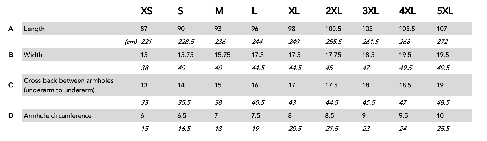 While the length, width, and armhole circumference for each provided size is somewhat universal, a person’s cross back measurement can vary within each size. This is something you may want to modify to ensure the wrap fits perfectly.