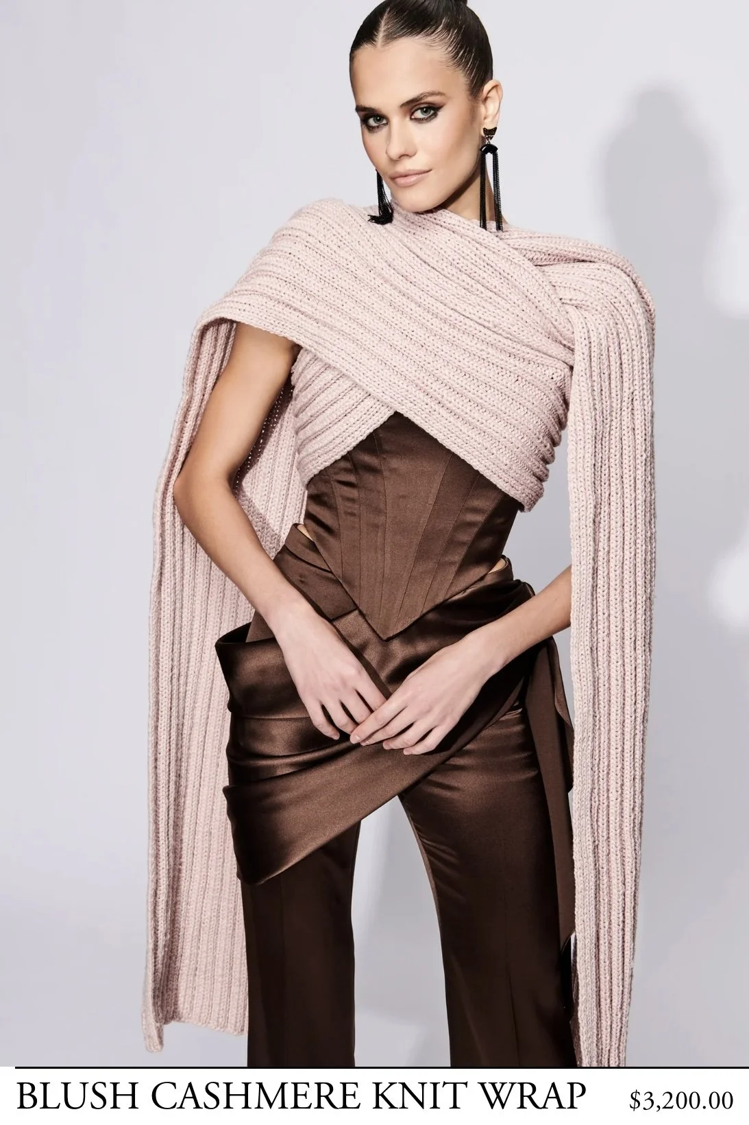 The basic shape but clever armhole placement of CS’s design allow the piece to be worn in a variety of ways. Whether you’re throwing one end of your shoulder Zendaya-style, criss-crossing both ends the way CS featured it on the runway, keeping it long and lean at both sides, or even flipping it around for frontal coverage, the Serata Wrap is such an elegant addition to truly any outfit.