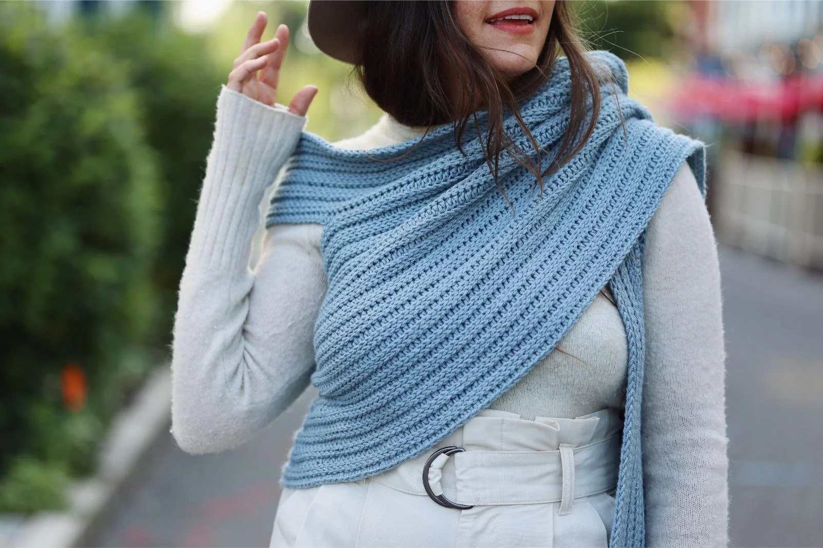 There’s basically nothing I love more than designing something that is versatile, chic, and beginner-friendly. This trifecta is the cream of the crop for me, and I’m thrilled to have ticked all of those boxes with the new Serata Wrap! Inspired by the iconic Christian Siriano wrap that debuted in his F/W 2016 show and went viral when Zendaya was photographed in it while strolling the streets of Paris, this wrap is somehow both modern and timeless. Best of all? It’s fully customizable and I provide instructions on how to tailor it to your body for a perfect fit. Scroll down for the free pattern, purchase an ad-free, printer-friendly PDF here, or shop the full yarn kit here